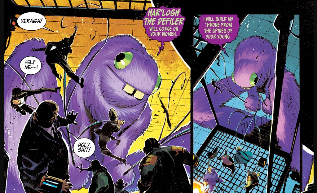 It’s been a few years now—and I think it’s been on my Top Ten list every year—and the series is finally pointing downhill, kicking off the brakes, and racing toward it’s conclusion. Grant McKay, and the battered few Anarchist Scientists now left, have found their way back to their home dimension, and all the chickens have come home to roost, people. All of them, and the Earth is doomed. The possessed armies of ravaged dimensions McKay and the others have left in their wake have all followed them home. The aforementioned millipede-people Death Cult has too. And then there’s Har’logh, the Defiler…